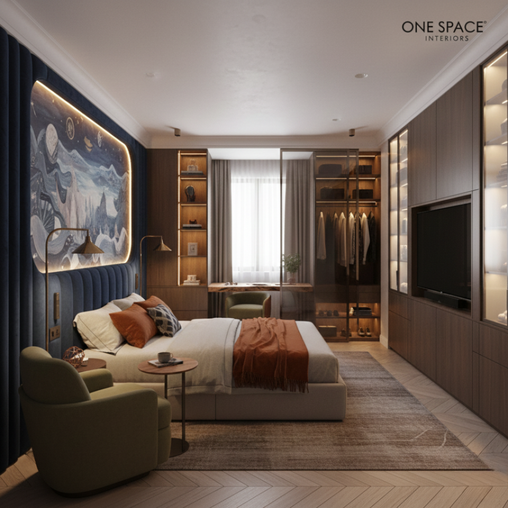 One Space Interiors specializes in creating personalized bedroom designs that align perfectly with each client’s lifestyle and preferences. Designers collaborate closely with homeowners to understand their daily routines, storage needs, and aesthetic goals.