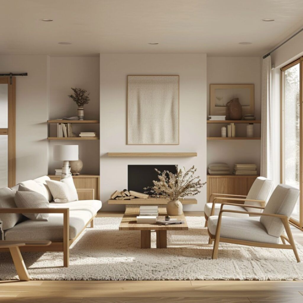 Scandinavian interiors focus on light, simplicity, and functionality. White walls reflect natural light beautifully. Wooden flooring adds warmth and texture. Soft textiles create cozy comfort. Minimal décor keeps spaces open and airy. Functional furniture supports everyday living. Pastel accents introduce gentle color. Indoor plants bring natural freshness. Clean lines maintain visual clarity. This style promotes peaceful and practical living.
